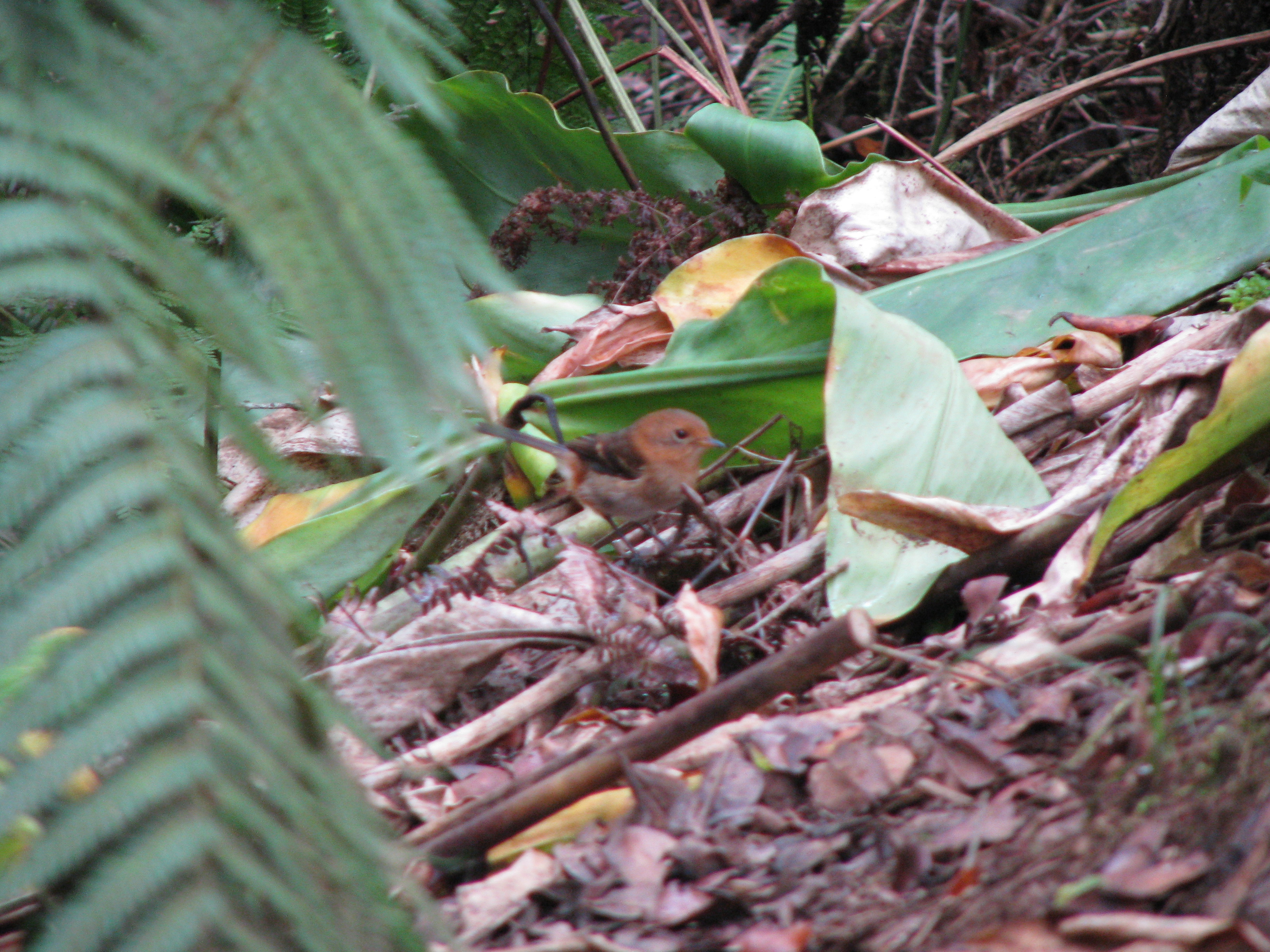 Those 3 birds are probably the most common native forest birds on Kaua’i. I saw and heard them numerous times while hiking around Koke’e. I did hear an ‘I’iwi (Vestaria coccinea) once. I was walking along listening to all the ‘Apapane calling (probably with their agents) when I heard a call that was, for a lack of a better word, more gurgly than the rest. I spotted the bird briefly, the wings seemed blacker and the rump was all red, no white underneath like an ‘Apapane. I’m pretty sure it was an ‘I’iwi, but before I could take a decent picture, it flew off.