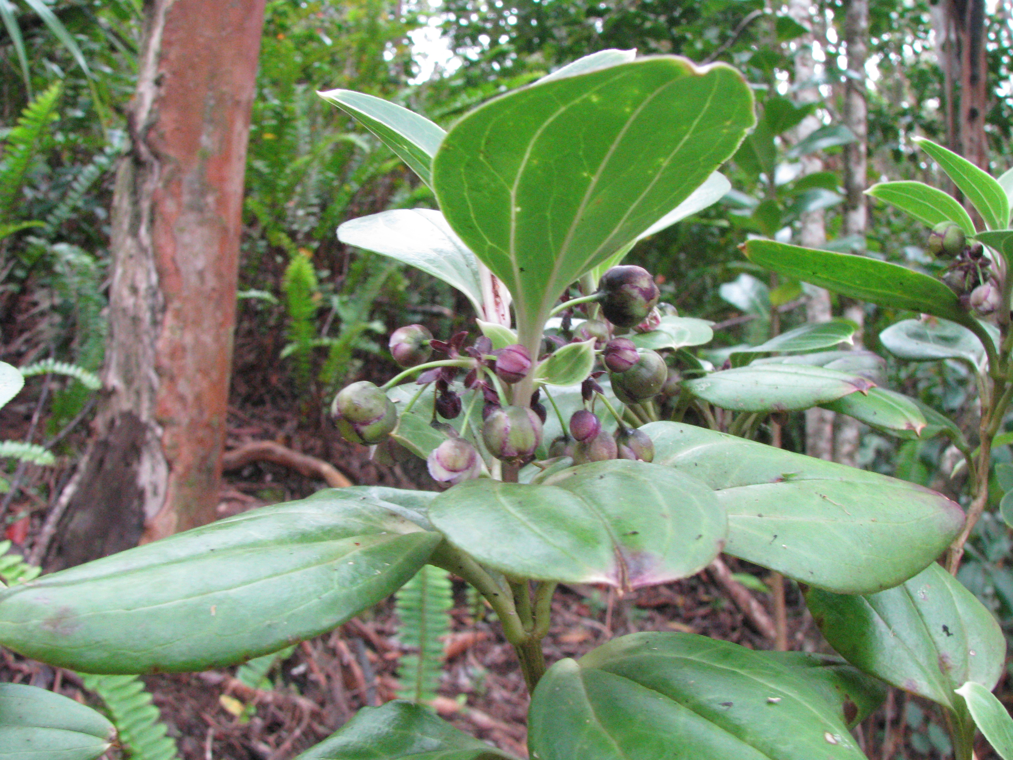 More confusion! Although perhaps it is a little bit more understandable in this case. I thought I was looking at some kind of Melicope. This is actually large-leafed, super revolute form of Ohi’a ha (Szygyium sandwicensis). This variant can be found in the Ko’olaus as well.