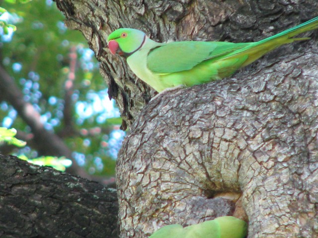 But there is a feral bird found at the palace that isn’t as common as the others. It’s the Rose-ringed Parakeet (Psittacula krameri).