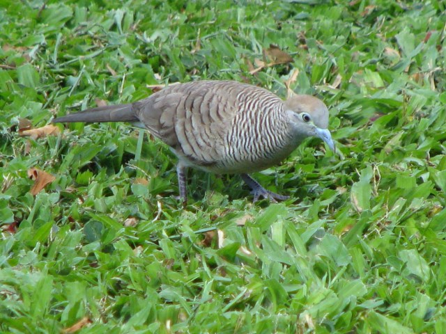 The grounds do have the usual urban birds: Common Mynas (Acridotheres tristis), Rock Pigeons (Columba livia), Zebra Doves (Geospelia striata), Red-vented Bulbuls (Pycnonotus cafer), House Sparrows (Passer domesticus), among others. These birds are very common in an around the human environs. Although the Java Sparrow populations seemed to have declined in town. Here’s a picture that I took of a Zebra Dove to represent the group: