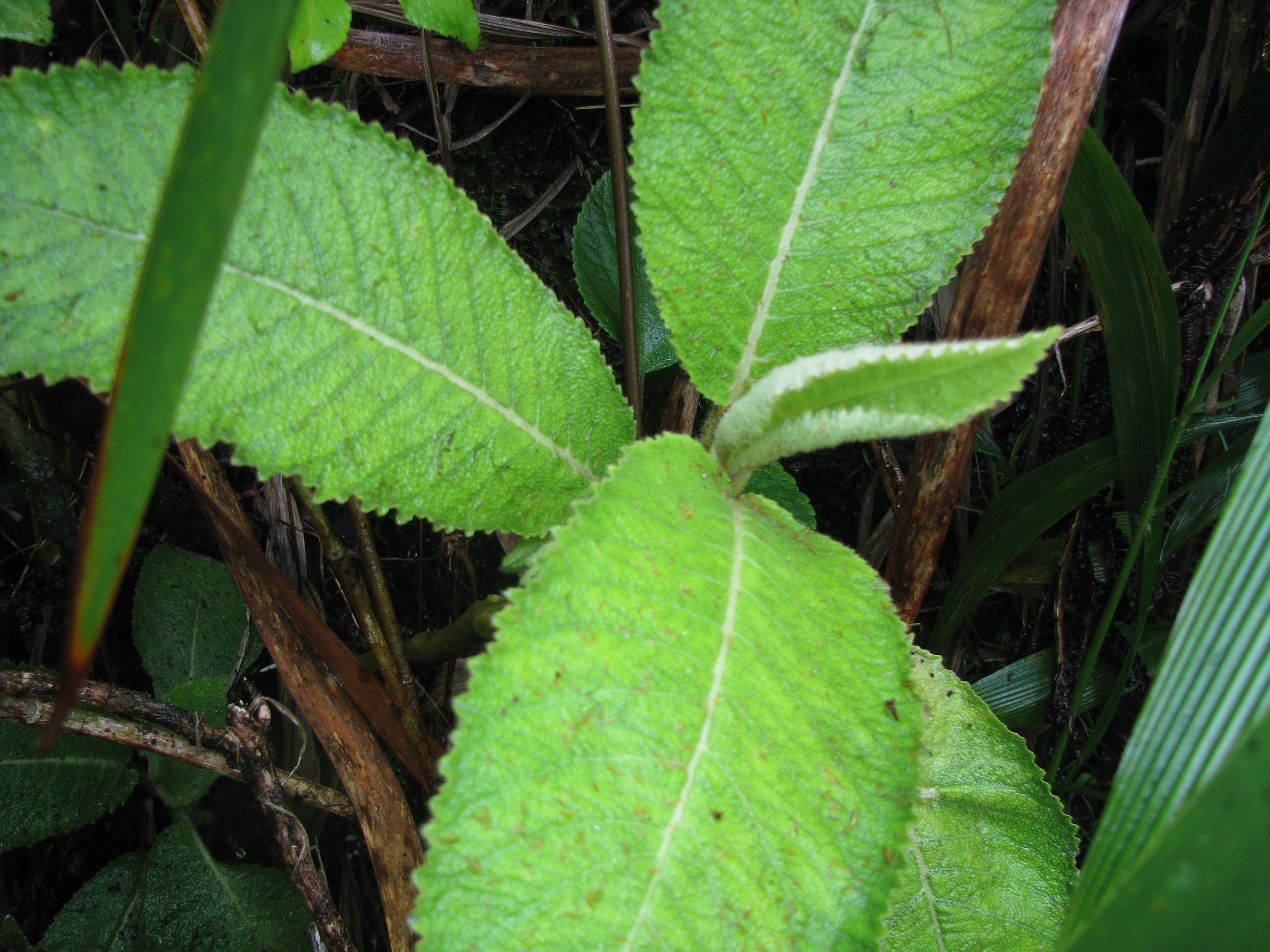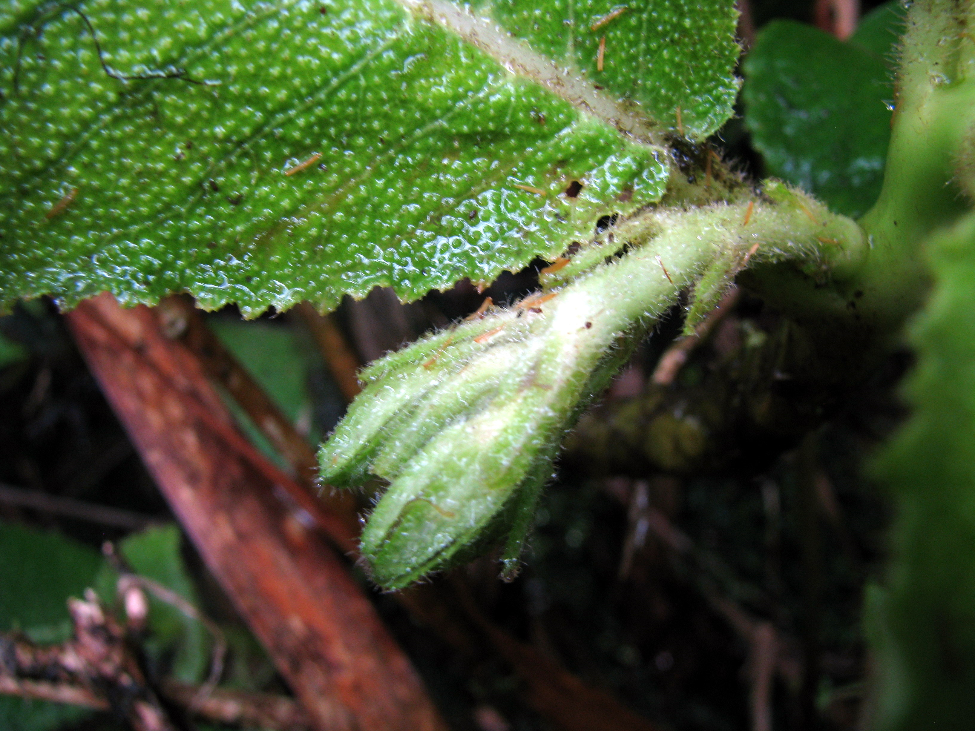Like any good quest, we were searching for something in specific. And, after of few hours of hiking, getting completely soaked to the bone by the rain and foliage in the process, we came across the very plants we were looking for. It’s Cyanea humboldtiana! It was a small population of about 5 plants. Unfortunately, like the C. oblongifolia, 4 of these guys were also growing dangerously on the stream bank.