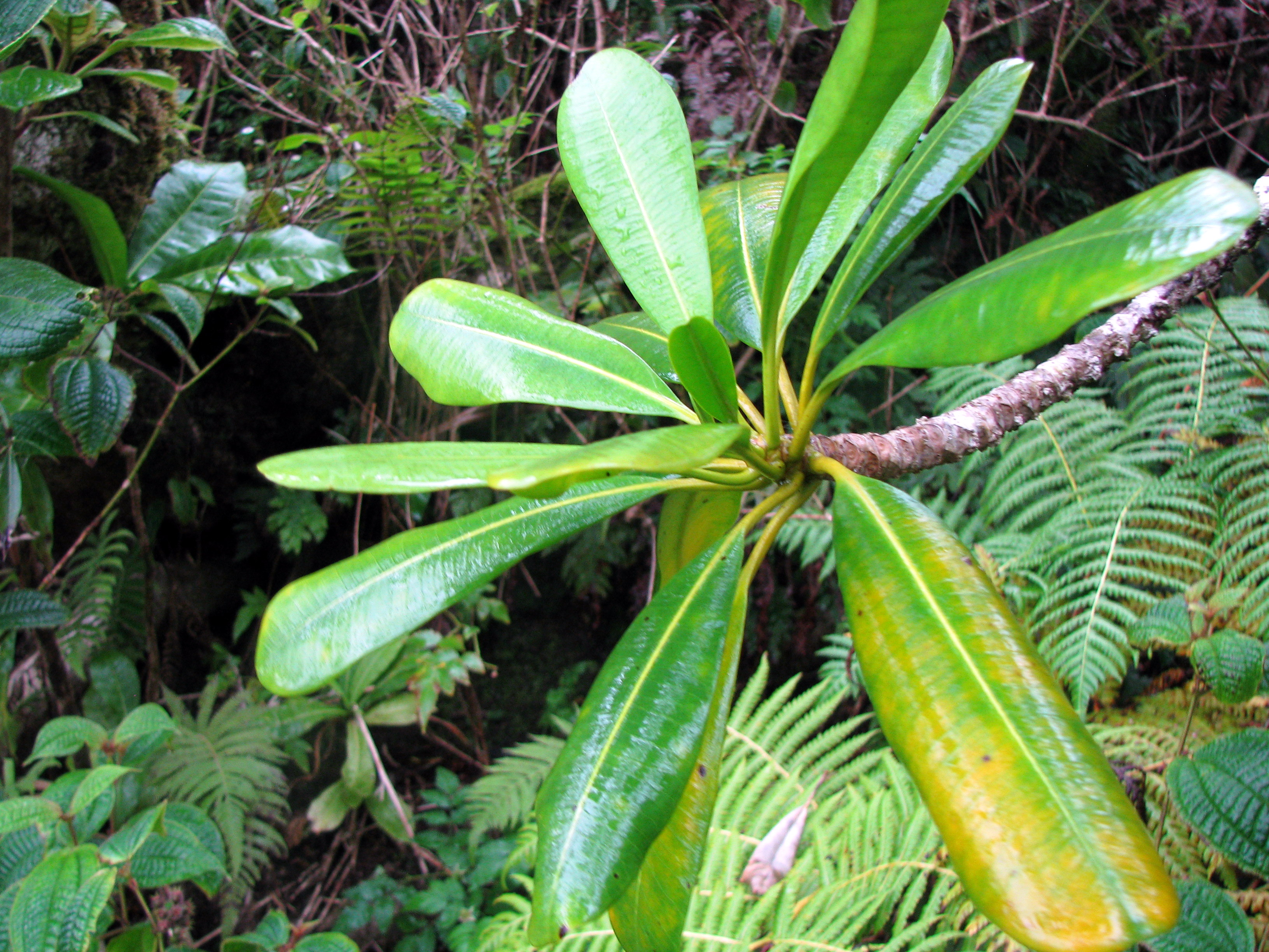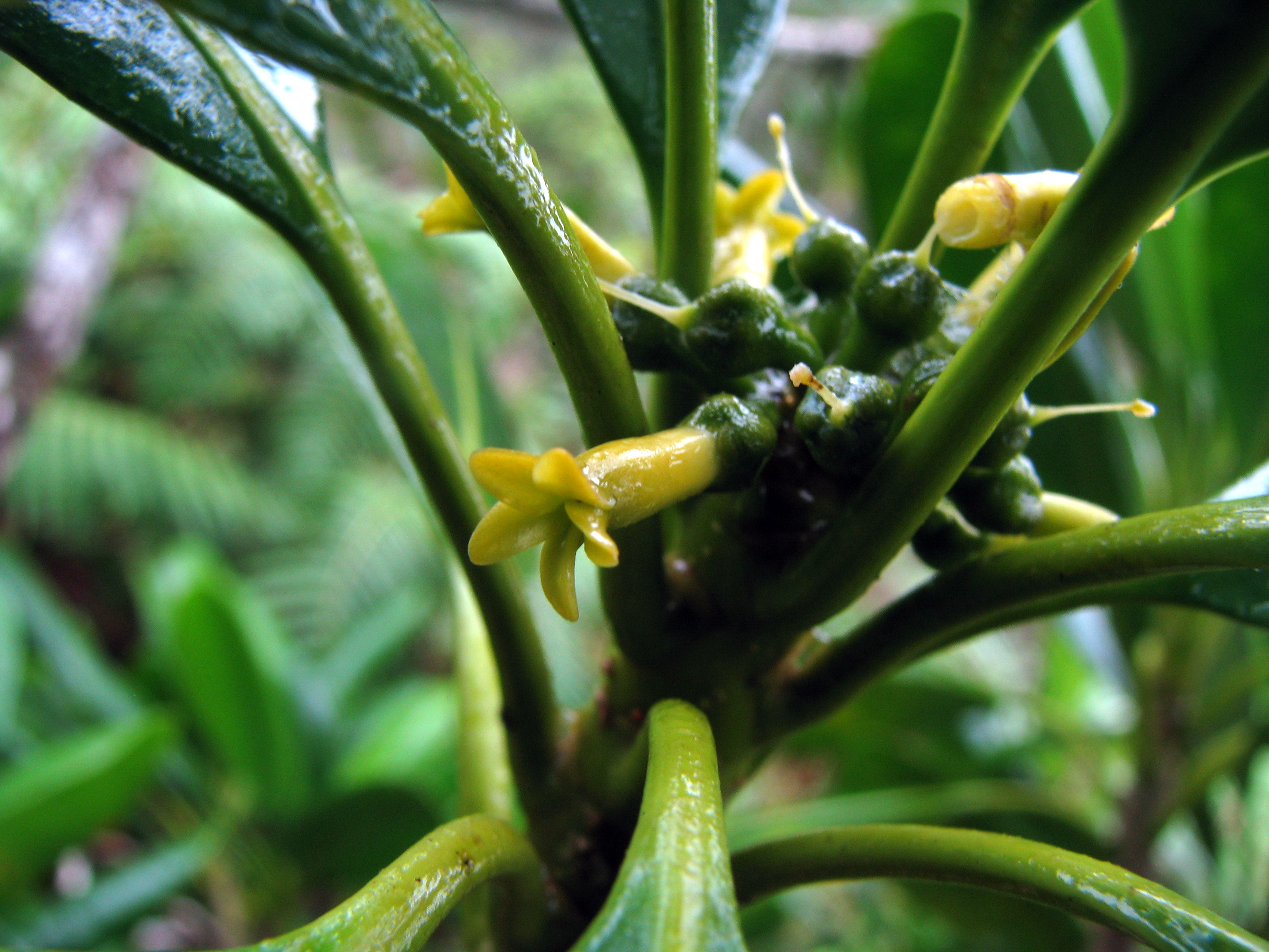 A’e (Zanthoxylum oahuense) is a rare Rutaceae found only in the wet summit areas of the Ko’olaus. From afar, this species can be confused with Lapalapa (Cheirodendron platyphyllum). From Danakil it might be a different story. (A 100 marvelous points for anyone that gets this bad geography joke!). Anyway, the leaves on A’e are typically much darker than Lapalapa.