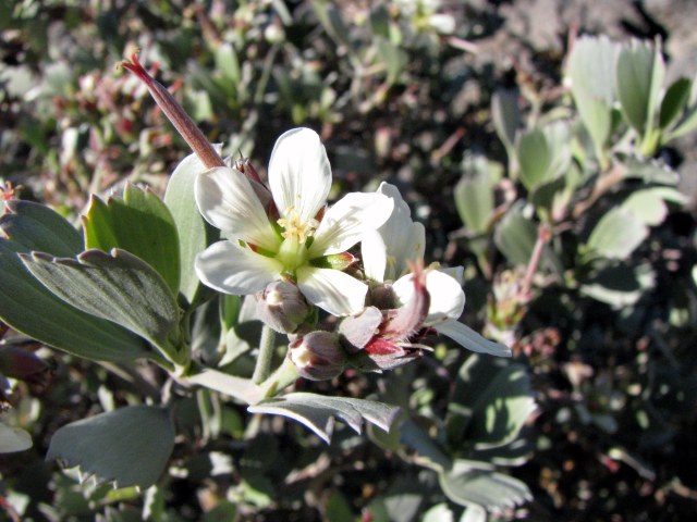This striking guy is Nohoanu (Geranium cuneatum). The Hawaiian Geraniums are of particular interest because they are among the woodiest Geraniums in the world. Woodiness is a trend also seen amongst the native amaraths (Charpentiera ssp.) and the Hawaiian Goosefoot (Chenepodium oahuense).