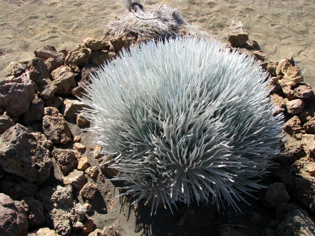 The landscape at the very tops of the tallest Hawaiian volcanoes is starkly different that other areas of the islands. As lush as any Hawaiian rain forest is, the mountain summits are just as oppositely barren. It’s a world of rock for the most part, with lots of solar radiation and extreme weather to boot. It’s in this seemingly inhospitable environment some native plants make their home.