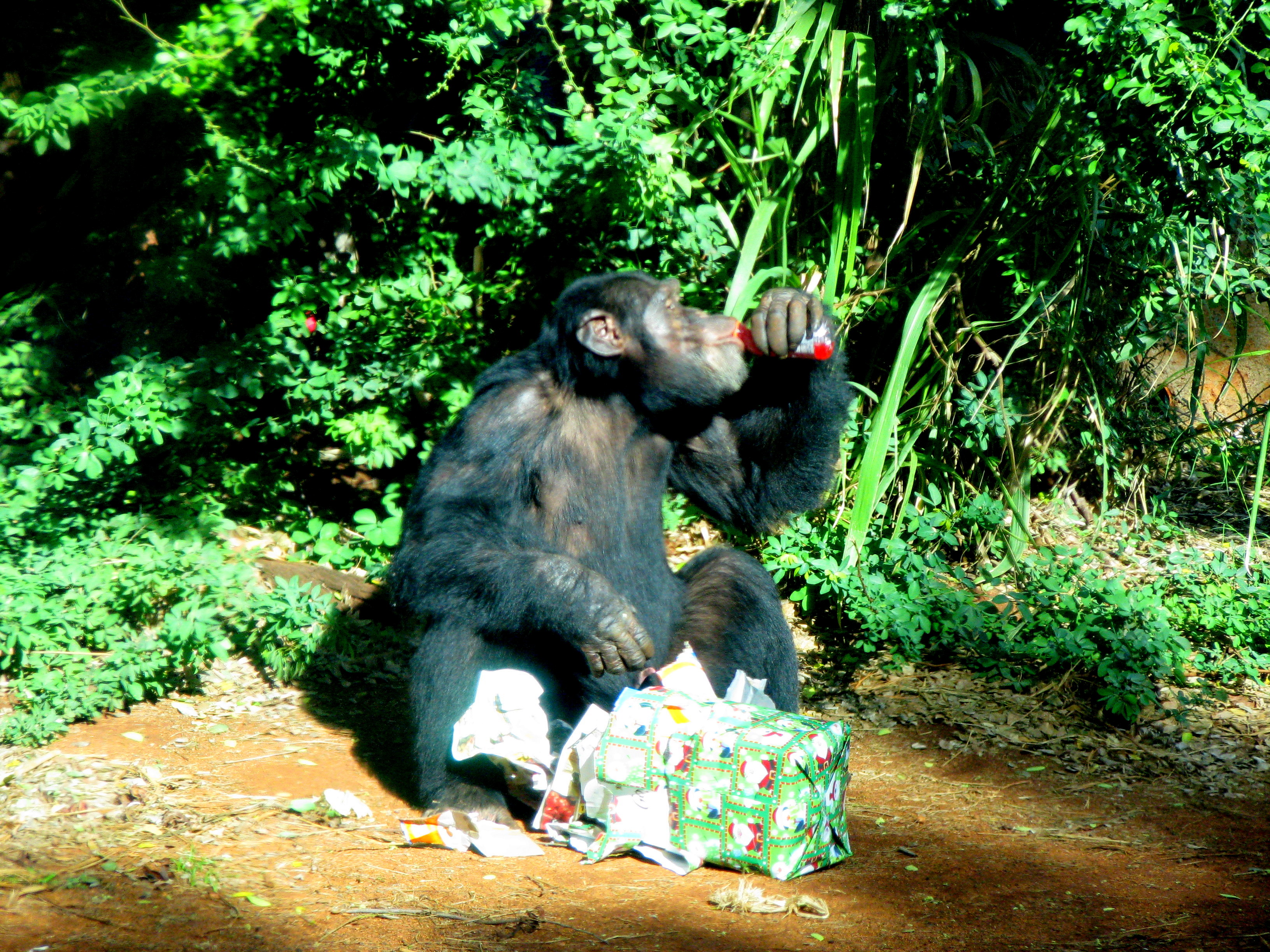 Every year, I try to make it to the “Christmas at the Zoo” event here at the Honolulu Zoo. It always makes for interesting shots like this one. As discombobulating as seeing a Chimp drinking heartily from a Gatorade bottle is, their technique for opening it is even more interesting. The Chimps just twist it open with their teeth. What a set of jaw musculature! If this Chimpanzee gazed upon Yorick’s skull, there’ll be no lamenting to Horatio about a life lost and realizations about death; he’d merely snort at the lack of a sagittal crest. Puny Humans!