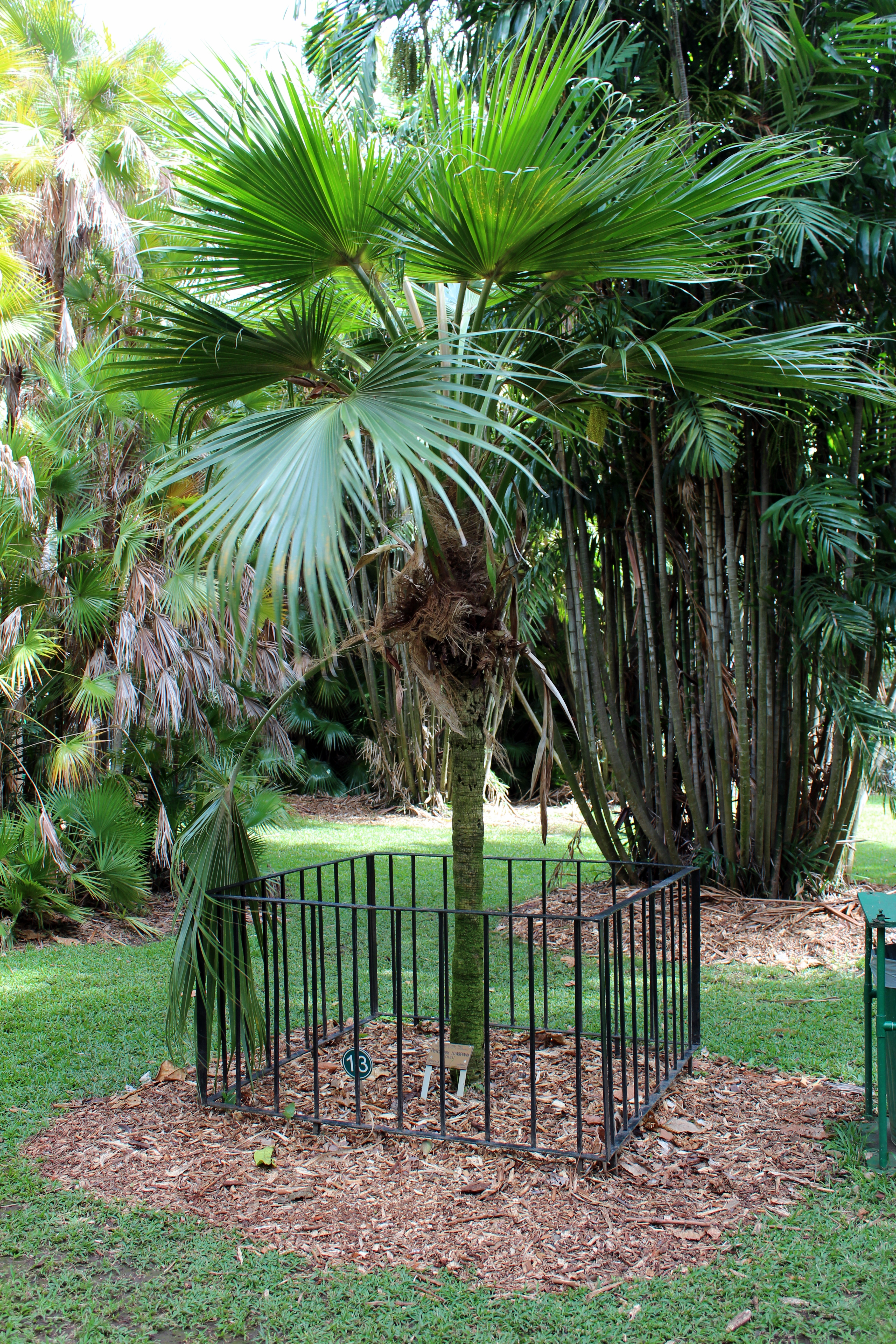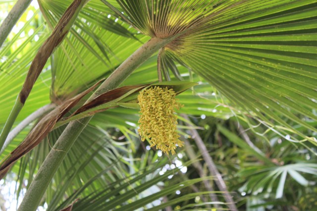 Tucked amongst the other massive palm trees at Foster Botanical Garden is this little unassuming guy. Yet, as you can see above, this palm has a fence built just for it. This native loulu (Pritchardia lowreyana) has an interesting backstory with some potentially large genetic ramifications.