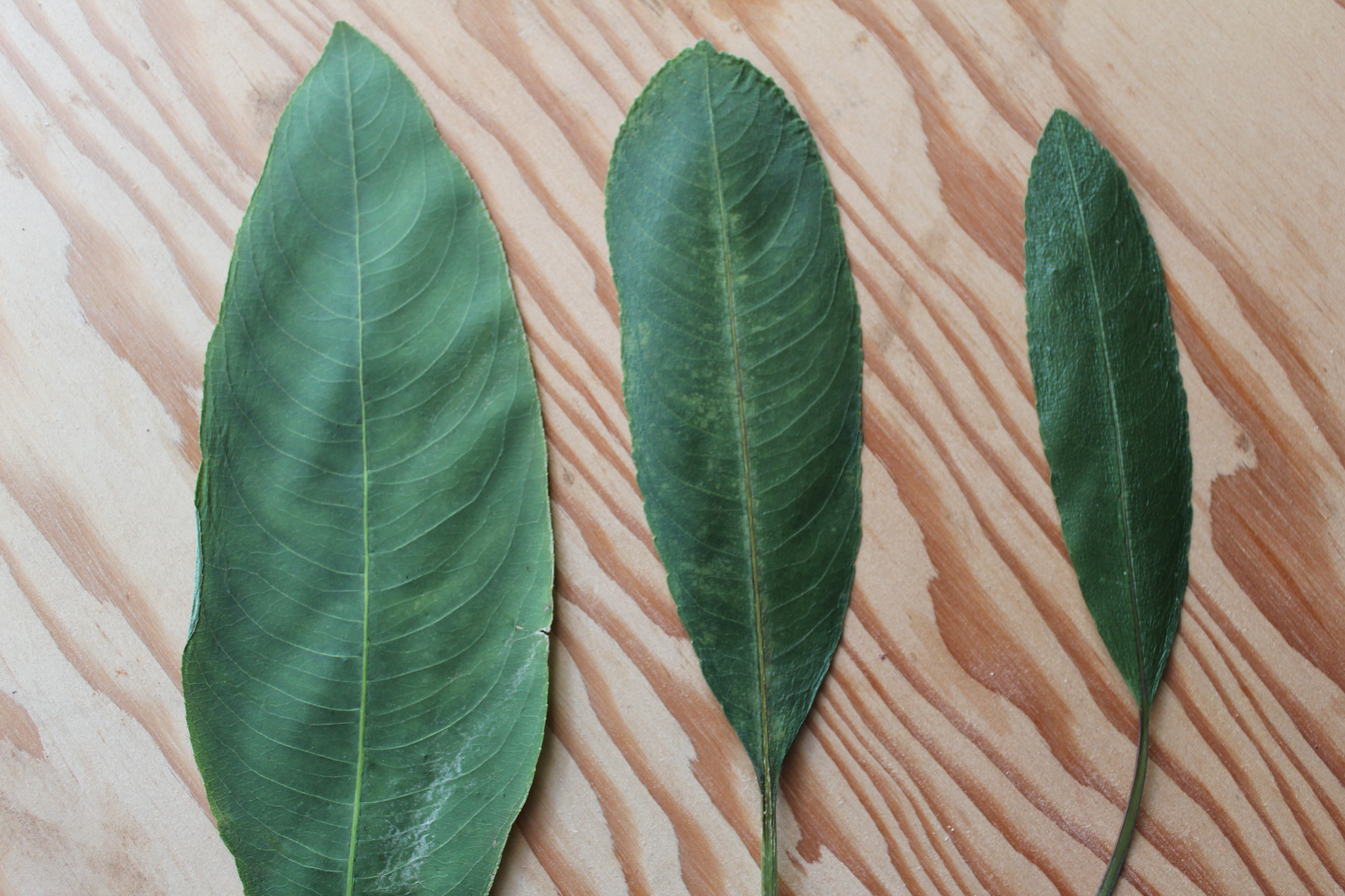 For me, seeing things side by side can really help clarify things. Here are the leaves of the different ‘Oha wai known with certainty from O’ahu. From left to right: Clermontia kakeana, Clermontia oblongifolia and Clermontia perscifolia. The leaves are all from plants roughly about a year and a half in age.