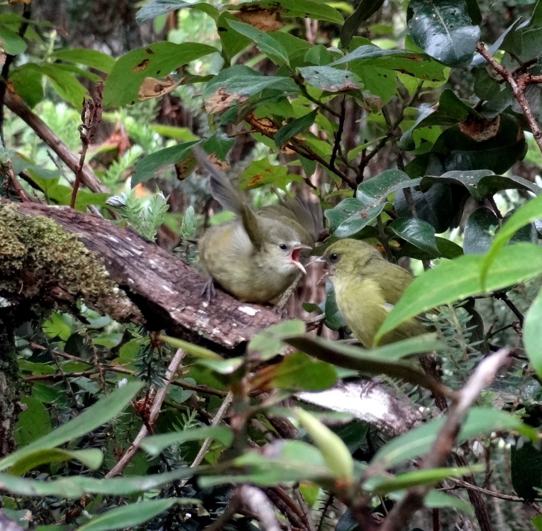 Hawai’i Creeper (Oreomystis mana) are also found only in high elevation forests of the big island. And, again like ‘akepa, they made for easy birdwatching. The name says it all; they’re not called Hawai’i Fast-Moving Herky-Jerks for a reason. Here a juvenile is begging for food from one of its parents. We must have stumbled onto a large multi-species foraging flock. It was a solid 20-30 minutes that we were surrounded by ‘akepa and creepers.