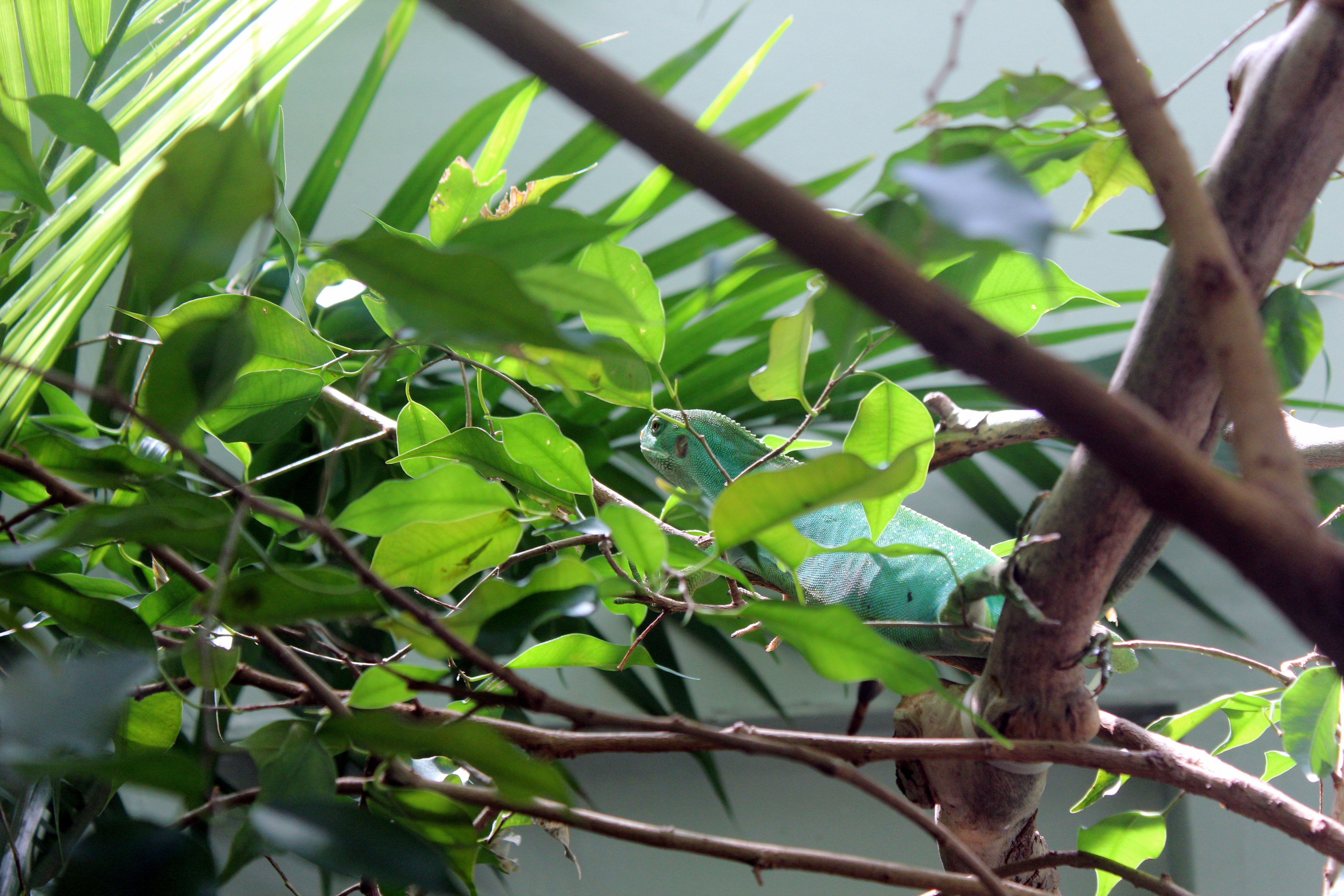 This is what I get for waiting so long to tag my photos. I swear this a Fijian Banded Iguana (Brachylophus fasciatus). But when I double check the National Zoo index, it is not there. It does seem to have the general cranial shape and small dorsal spines of B. fasciatus but it’s not banded. Juvenile perhaps? Regardless, I’m no expert and I’d rather not try to definitively answer it. Maybe someone can chime in.
