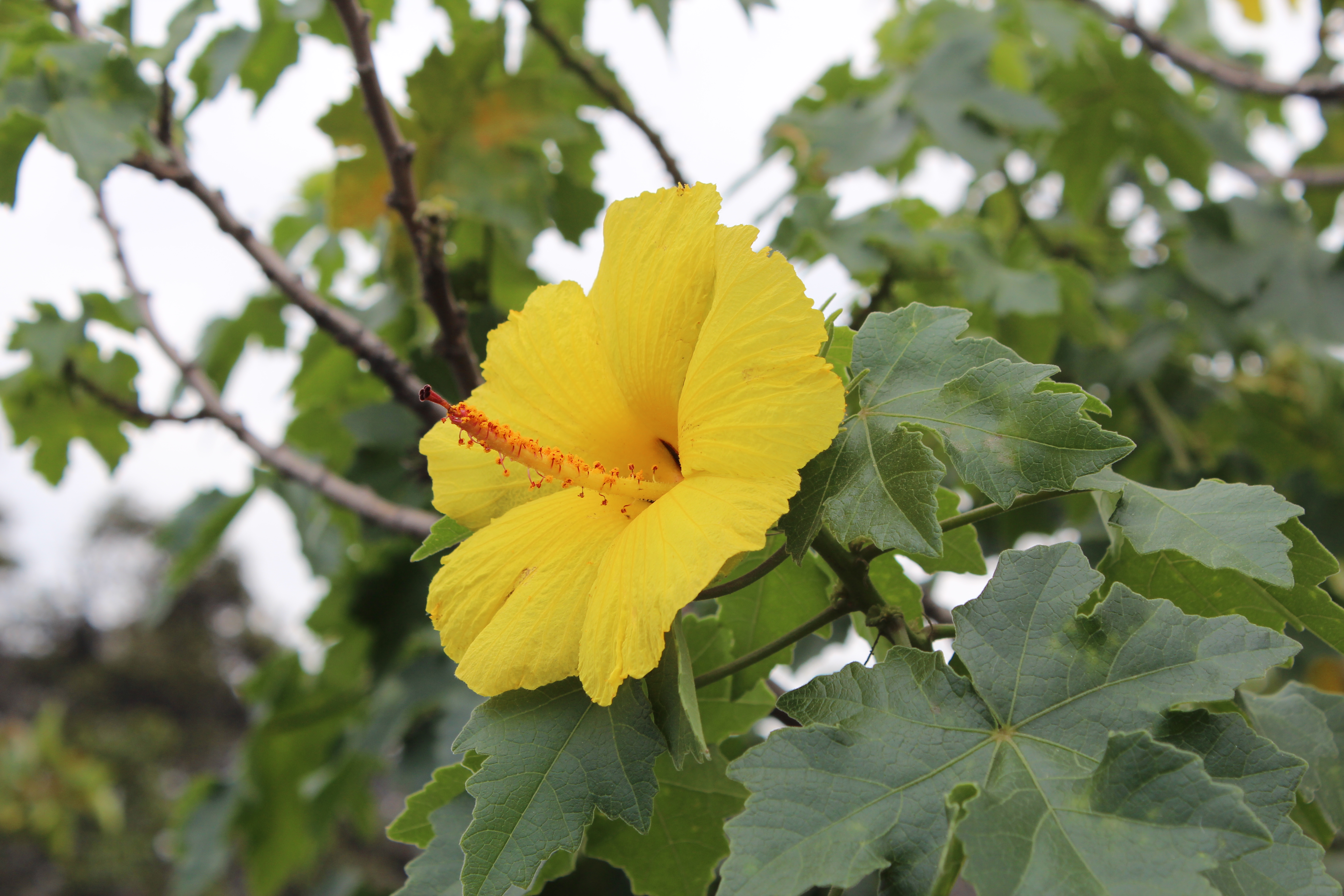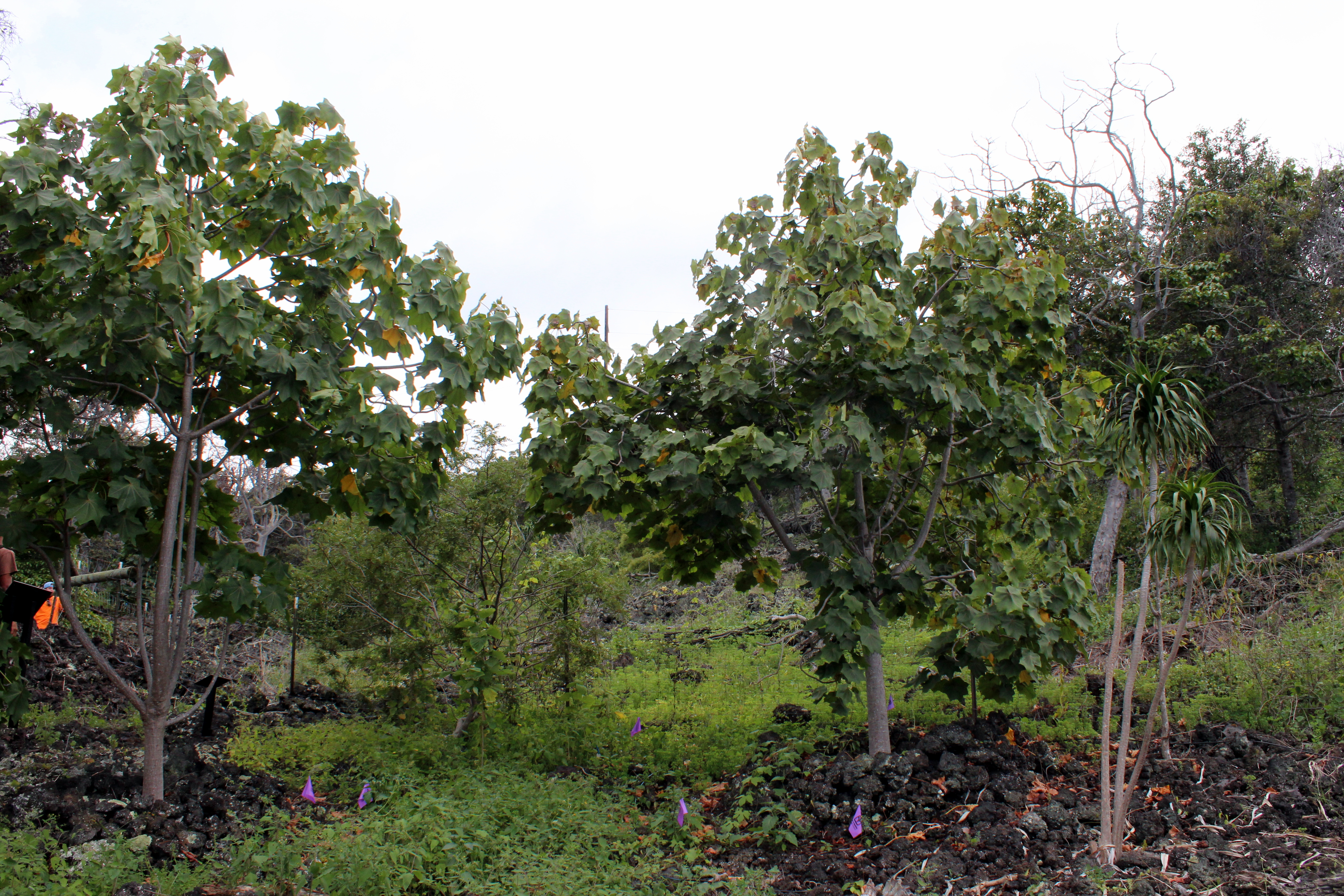 I’ll finish this post with these two trees that are not even in flower. They are Hau hele ula (Kokia drynarioides). K. drynarioides is a highly endangered plant found naturally only in North Kona. What makes this two individuals unique is that they might be the last two wild individuals left! Every other mature individual of the species is either in cultivation or has physically been outplanted.