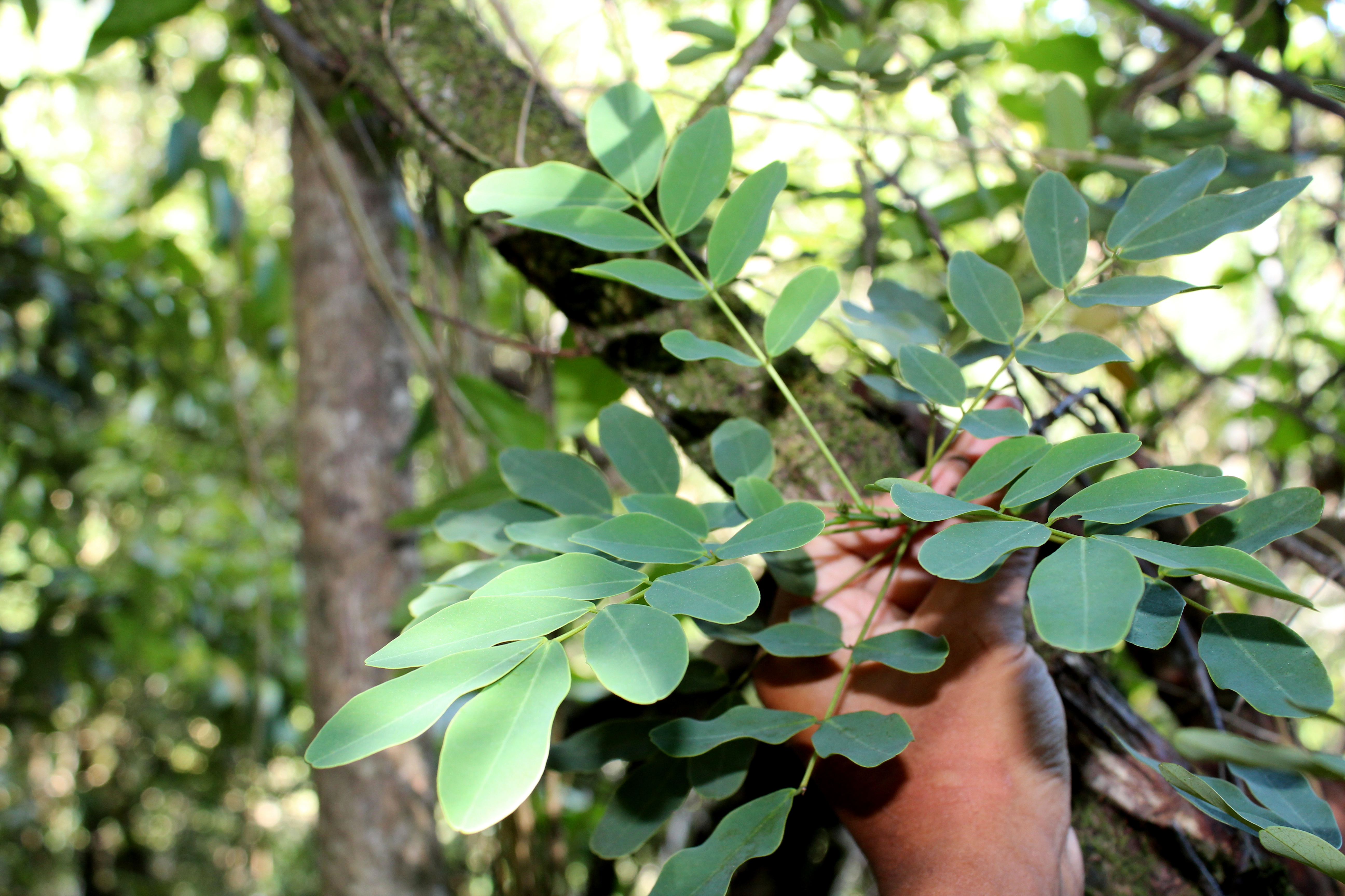 Maile (Alyxia stellata) was also a very conspicuous member of the forest. It was found in many spots clambering up the lama trees.