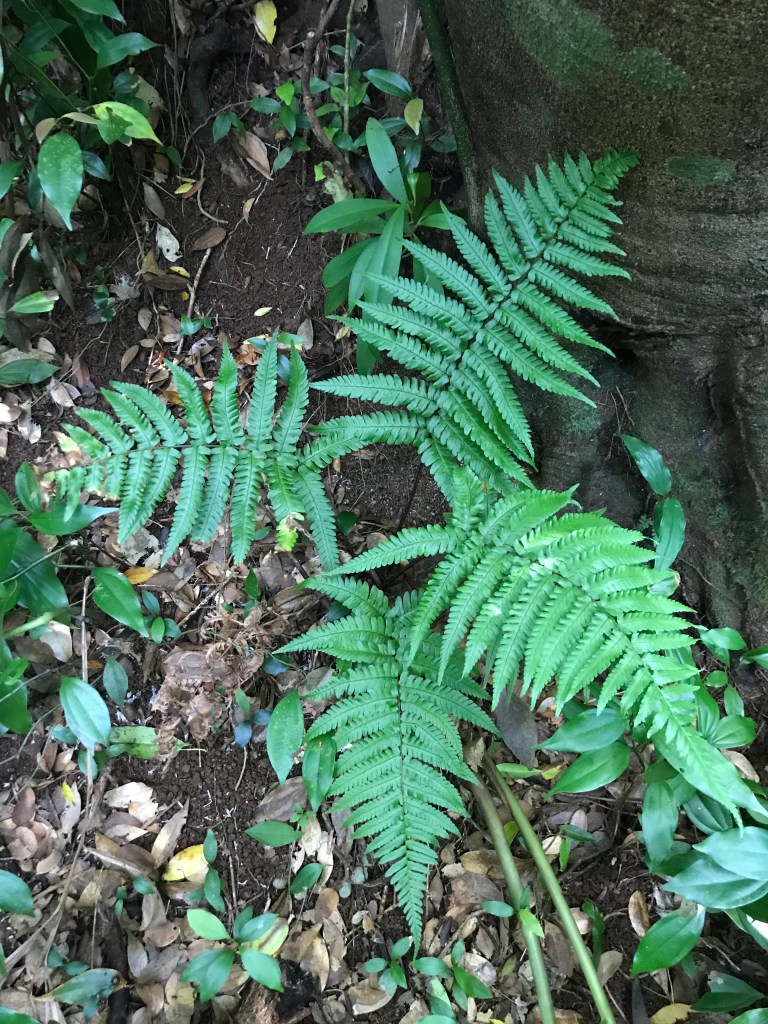 The populations are doing ok. Being terrestrial, they are susceptible to pig damage. This individual is actually growing at the base of an invasive cinnamon tree. I’m partial to the whole shuttlecock look, and am working to expand the population of this gorgeous fern at our restoration site.