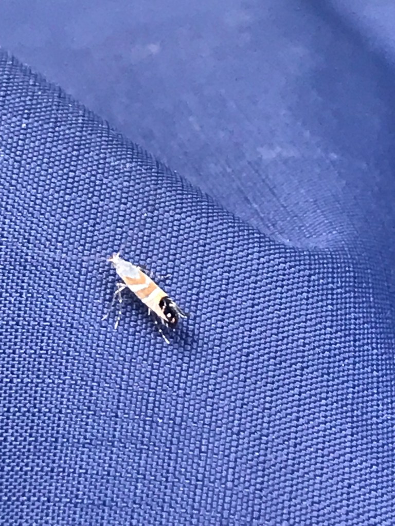 I was working up at the site recently when I came upon one of our neat micromoths. This species (possibly Philodoria splendida) uses `Ohi`a Lehua as a host plant. The larva mine the leaves before emerging as these pretty little moths.