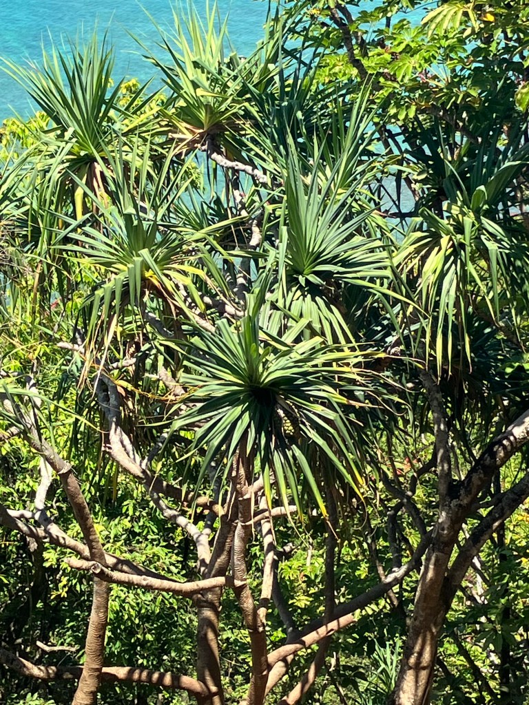 Unsurprisingly, the first native plant we came across was Hala (Pandanus tectorius). Hala, indigenous throughout the Pacific, can hold up well against aggressive non-native trees. It germinates readily; one can still come across plenty of Hala seedlings and saplings on the forest floor. It gives me some confidence that these populations are maintaining themselves. That fact is an unfortunate rarity among native plants.