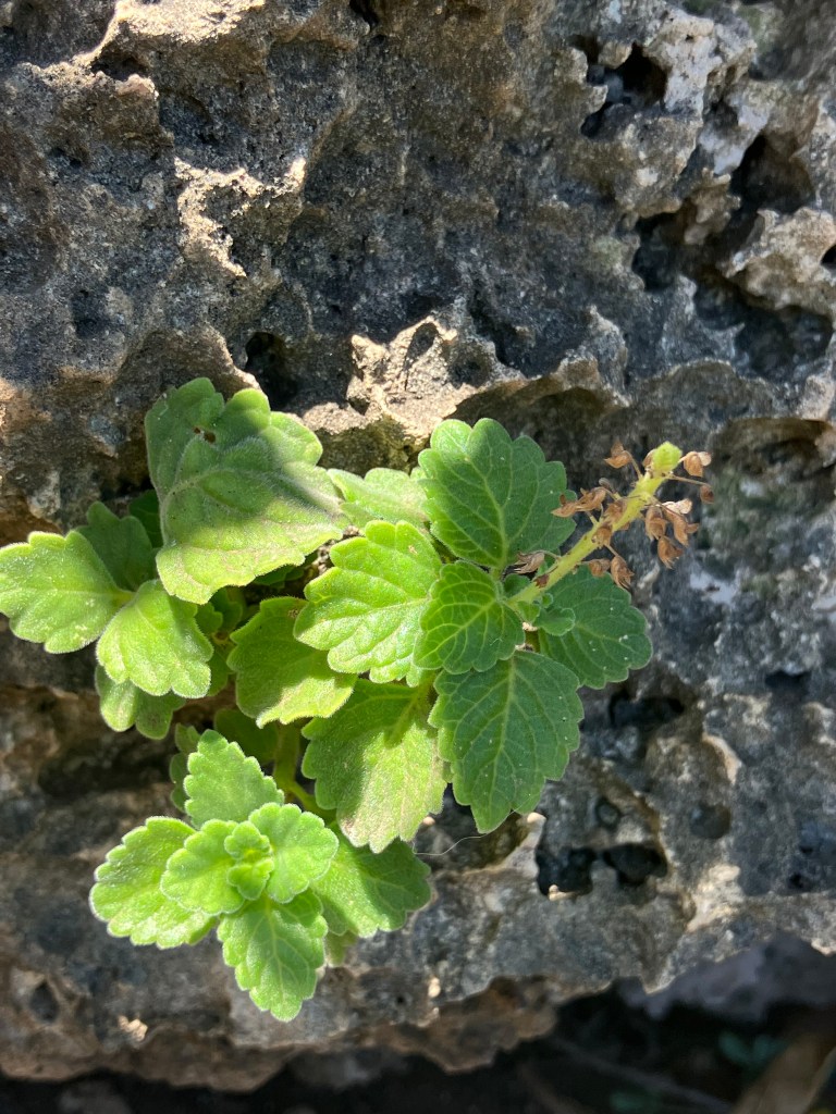 Near the top of the trail on some rocky outcrops was a small population of `ala `ala wai nui wahine (Coleus australis). These plants are quite hardy; I’ve seen them thrive and reseed themselves in pseudo-cultivated areas with little care.
