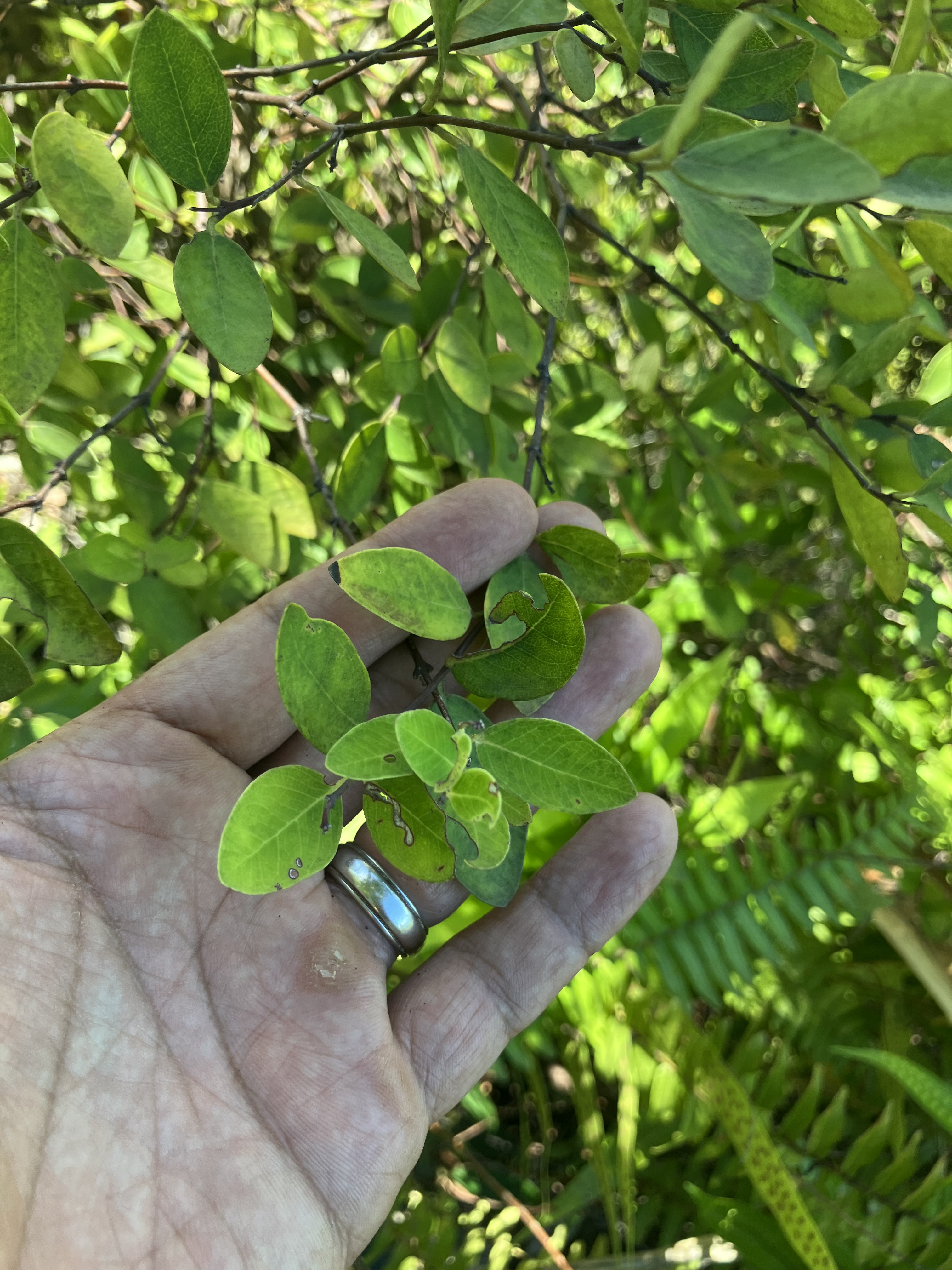So while I was almost expecting to come across a few Hala trees, I didn’t really think I would come across this. This is `akia (Wikstroemia oahuensis). It can actually still be found in degraded habitat so really it should not have come as a surprise to me as much as it did. But this was the plant that gave me pause and kept my eyes peeled for other survivors.