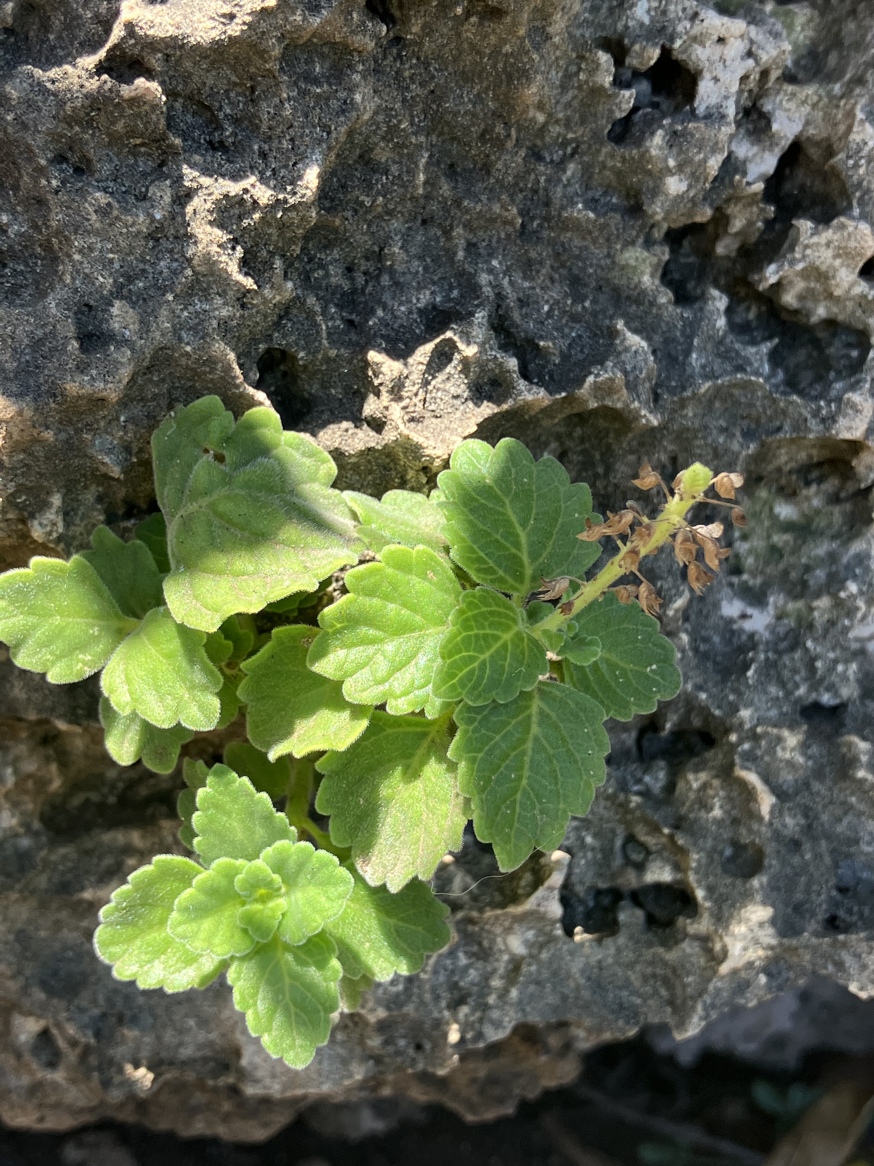 Near the top of the trail on some rocky outcrops was a small population of `ala `ala wai nui wahine (Coleus australis). These plants are quite hardy; I’ve seen them thrive and reseed themselves in pseudo-cultivated areas with little care.