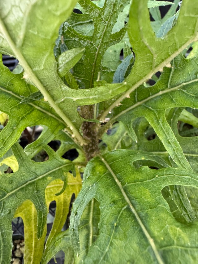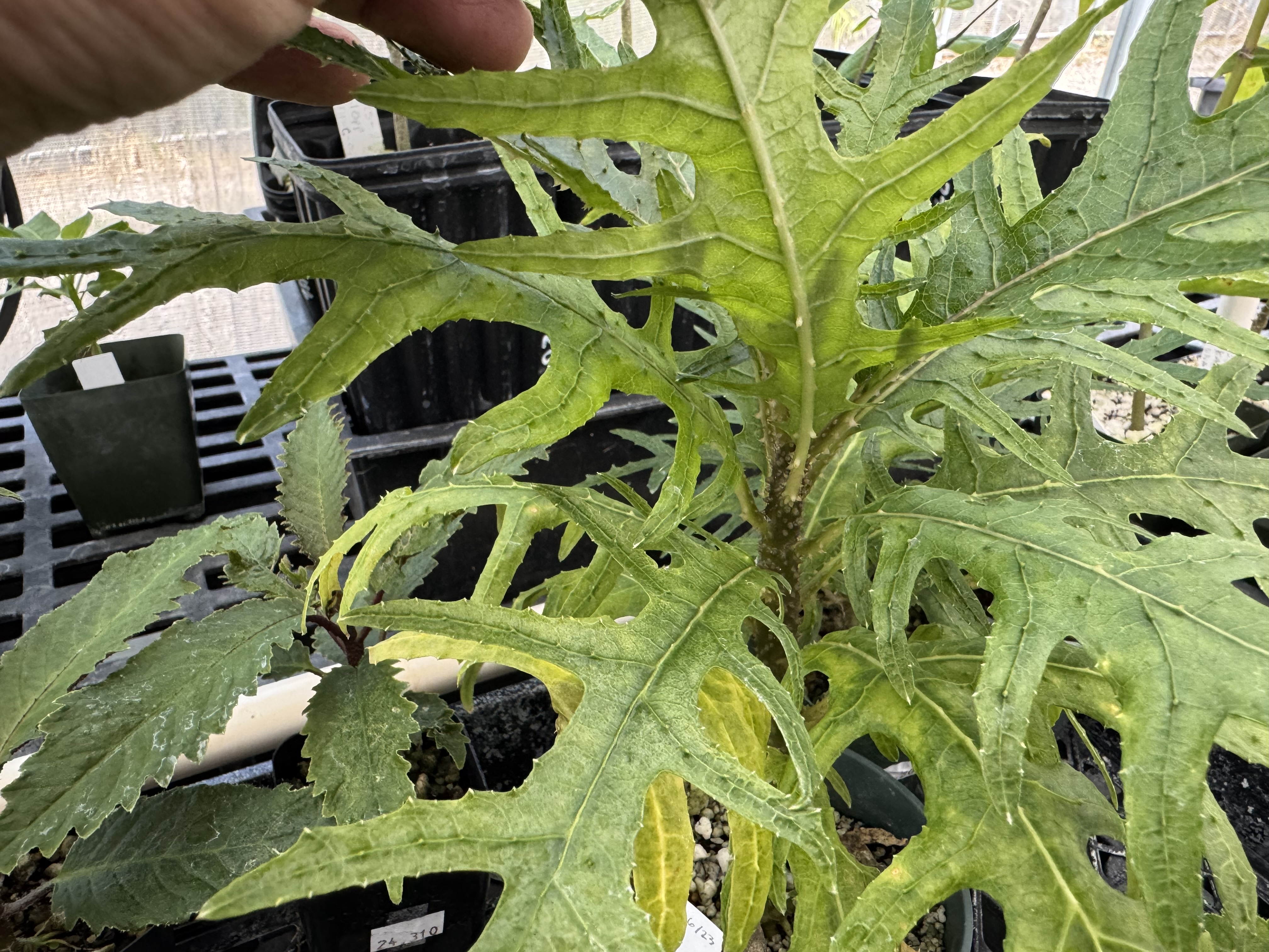 - My notes: 44th lobeliad in the series just in time for my 44th birthday. Yes, I’m slow at uploading :p Cyanea pinnatifida has quite the remarkable tale to me. For many years, only one wild individual was known, growing near the bottom of a gulch. What I thought was remarkable was that it seem to have a very specific extinction factor: Just above the plant was a large boulder which threatened to crush it. This boulder was being held up by a decaying tree. If anything captured the plight of Hawaiian flora, this was it. Luckily, folks from various institution were able to do micro-prop from this individual and hundreds of plants have been outplanted in protected habitat.